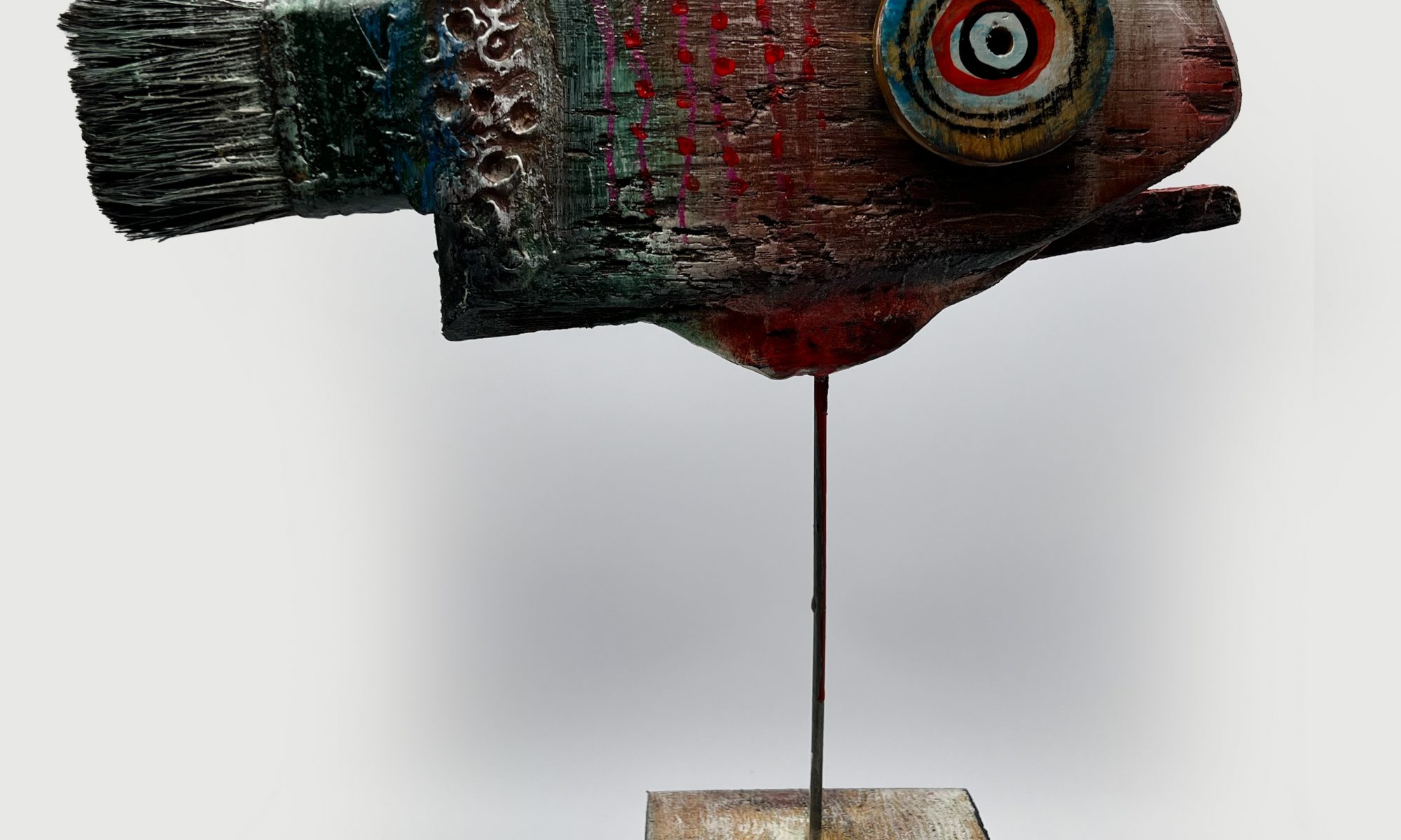 Statua Pesce Colorato in Legno