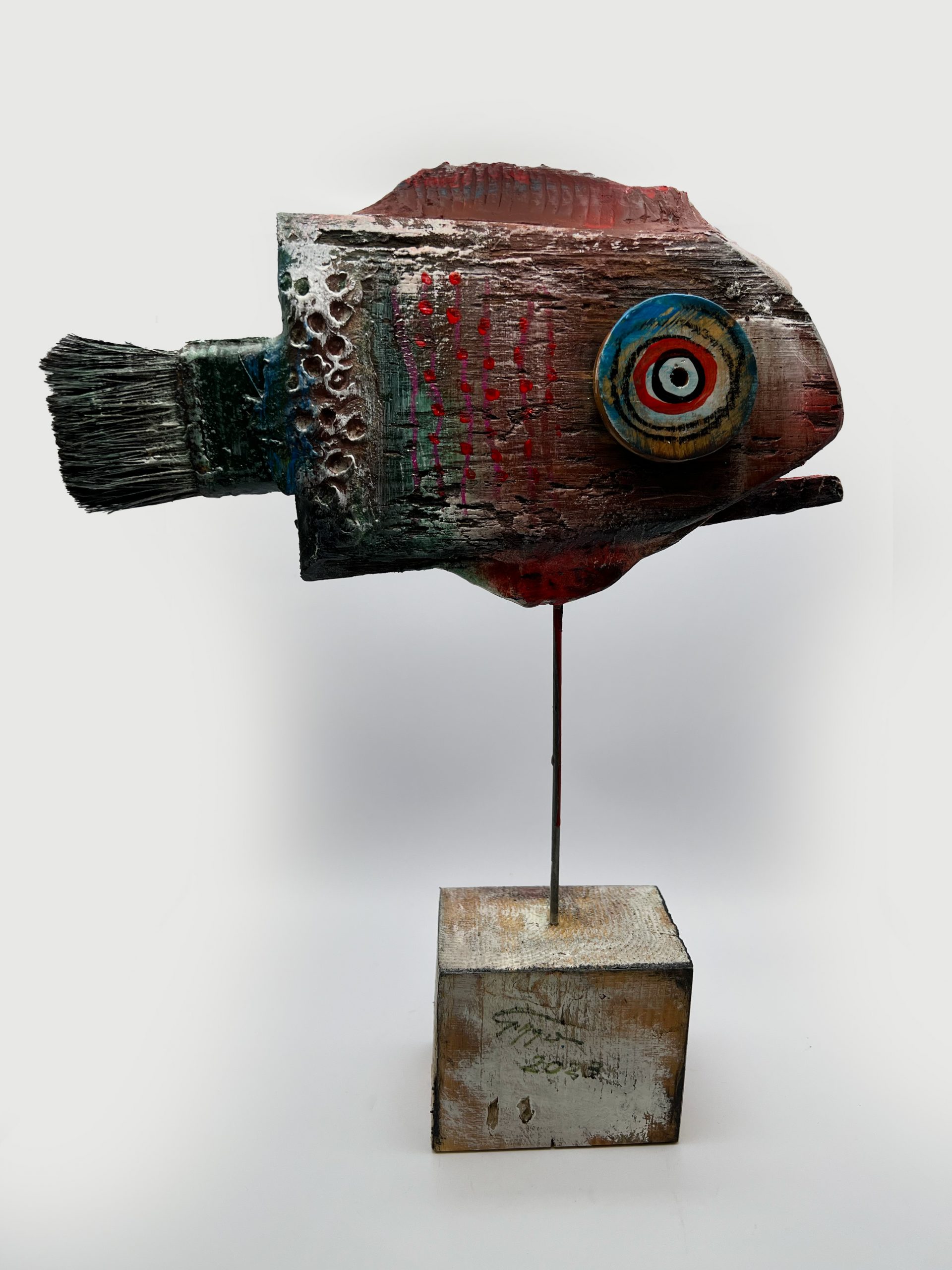 / Statua Pesce Colorato in Legno