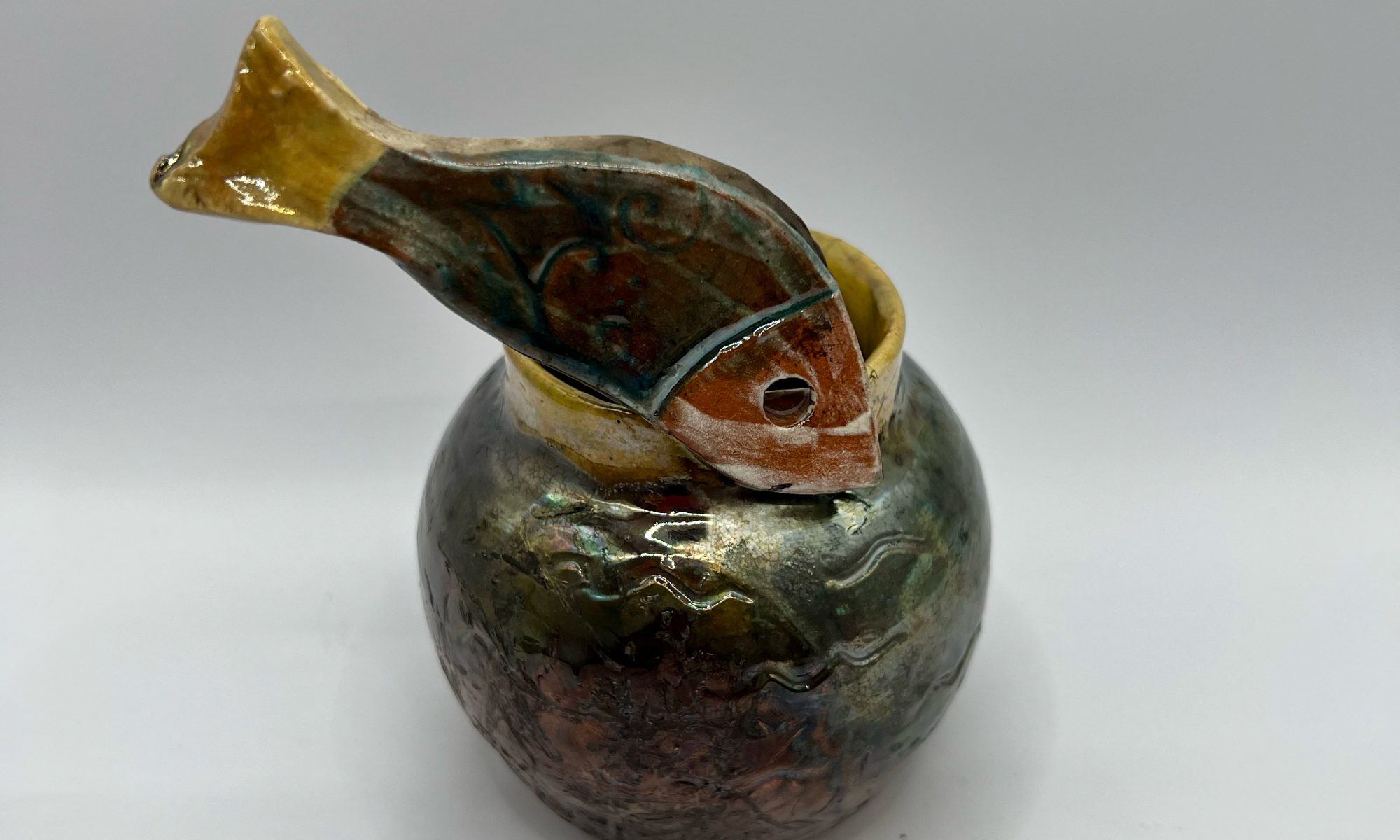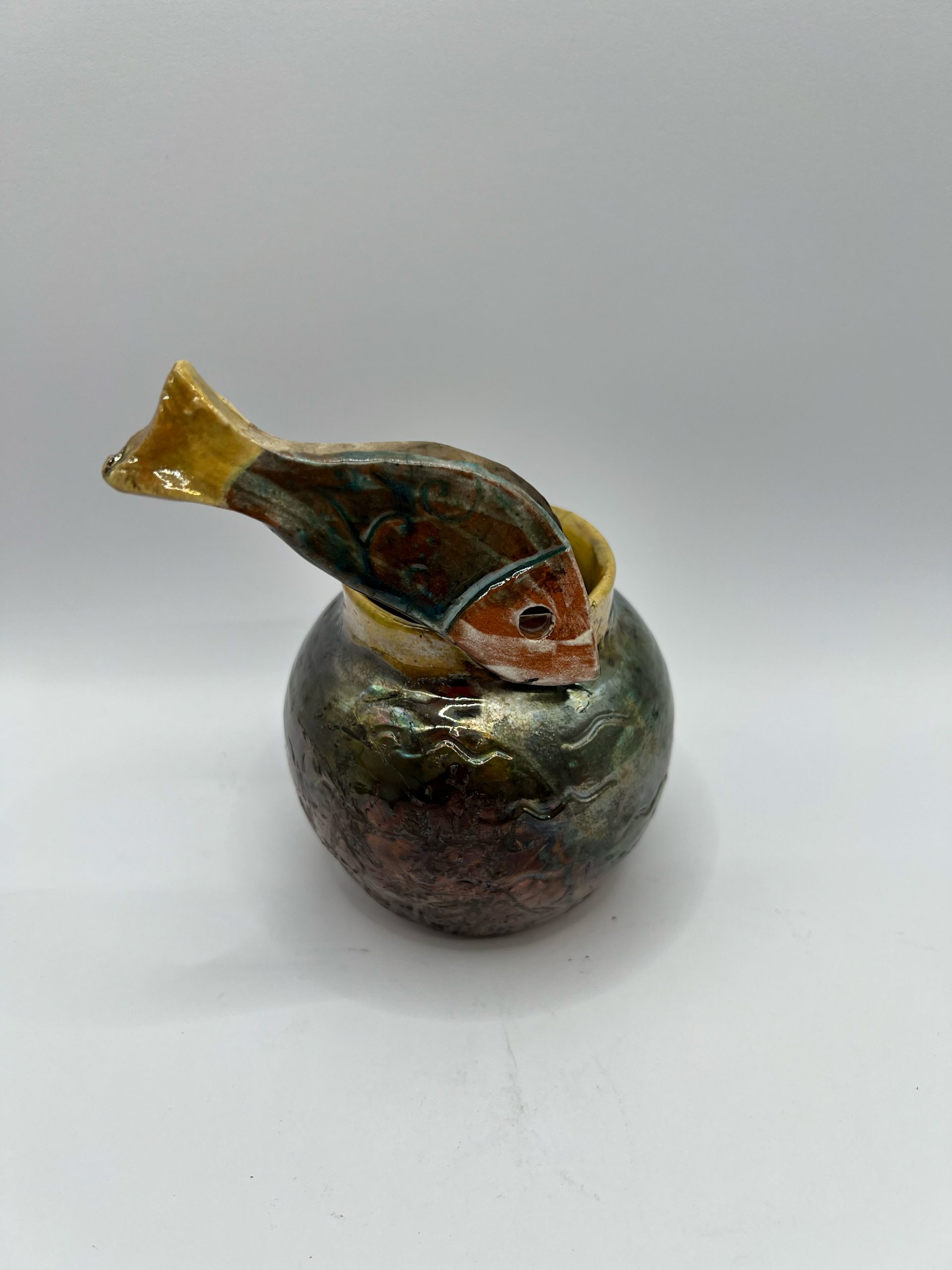 Vaso decorato con pesce fatto a mano.